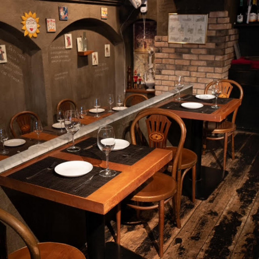- 天井が高めでワインカーブをイメージした店内。隠れ家のような雰囲気。